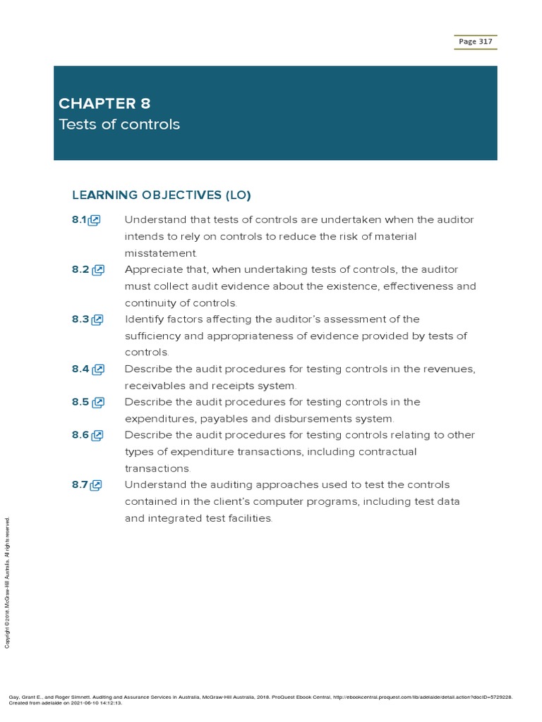 Chap 8 Tests Of Controls Pdf Audit Internal Control